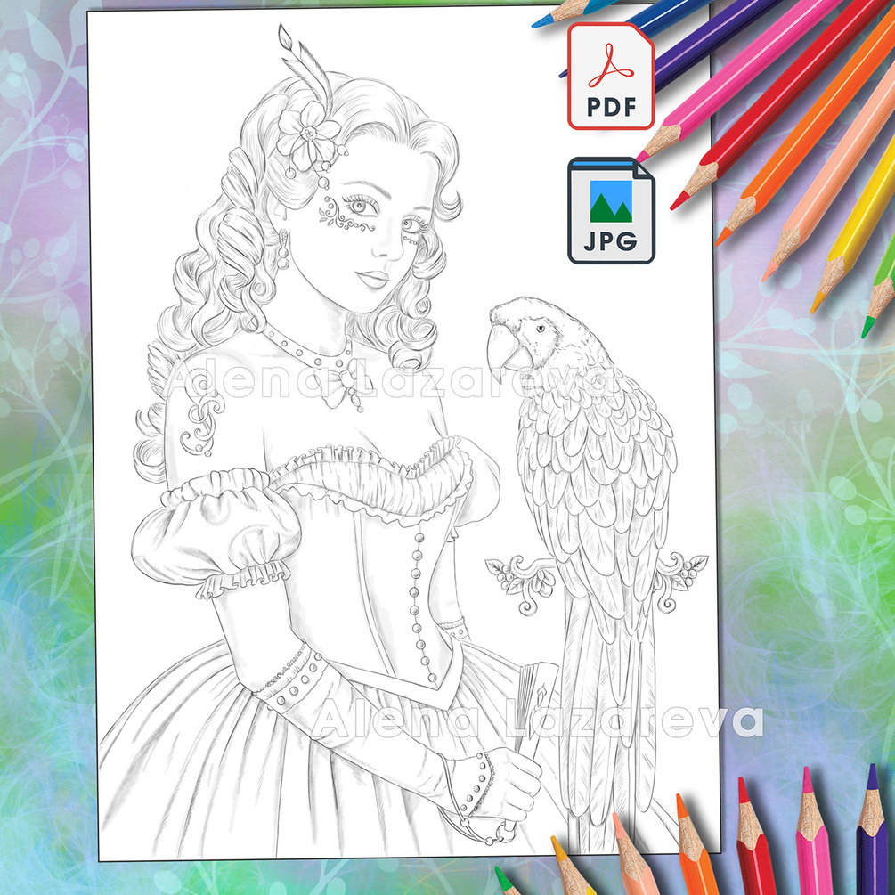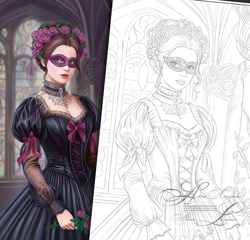 This set includes 3 coloring pages by artist Alena Lazareva.