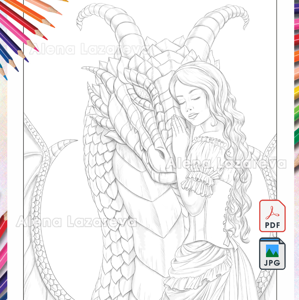 Set 2 Mystical Worlds dragons Coloring pages Grayscale by Alena Lazareva