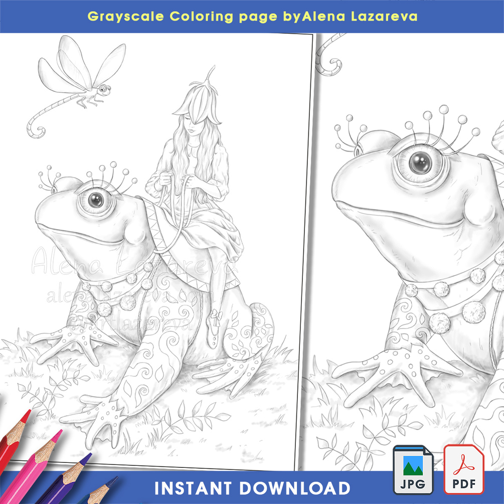 Fabulous adventures Coloring page Grayscale by Alena Lazareva