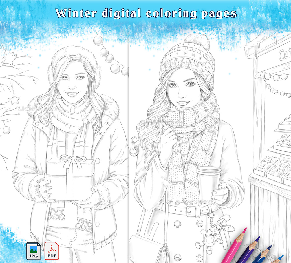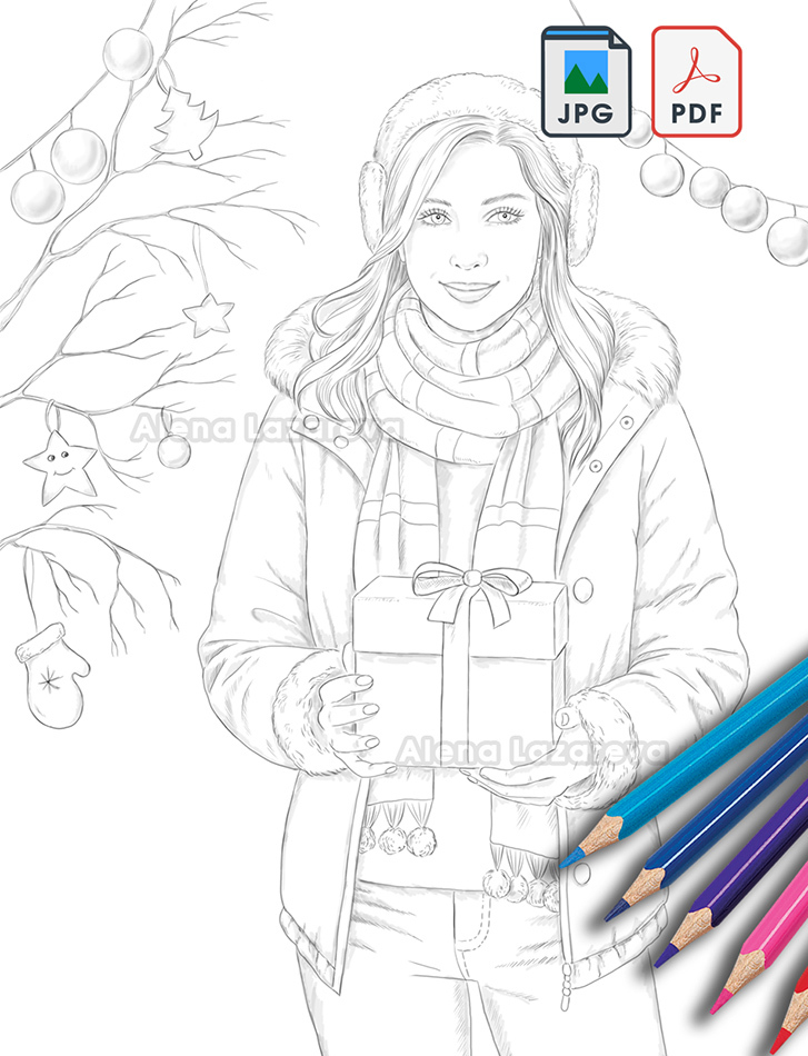 This set includes 2 digital coloring pages by Alena Lazareva .